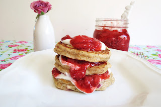 Strawberry Coconut Pancakes from Peanut Butter and Peppers