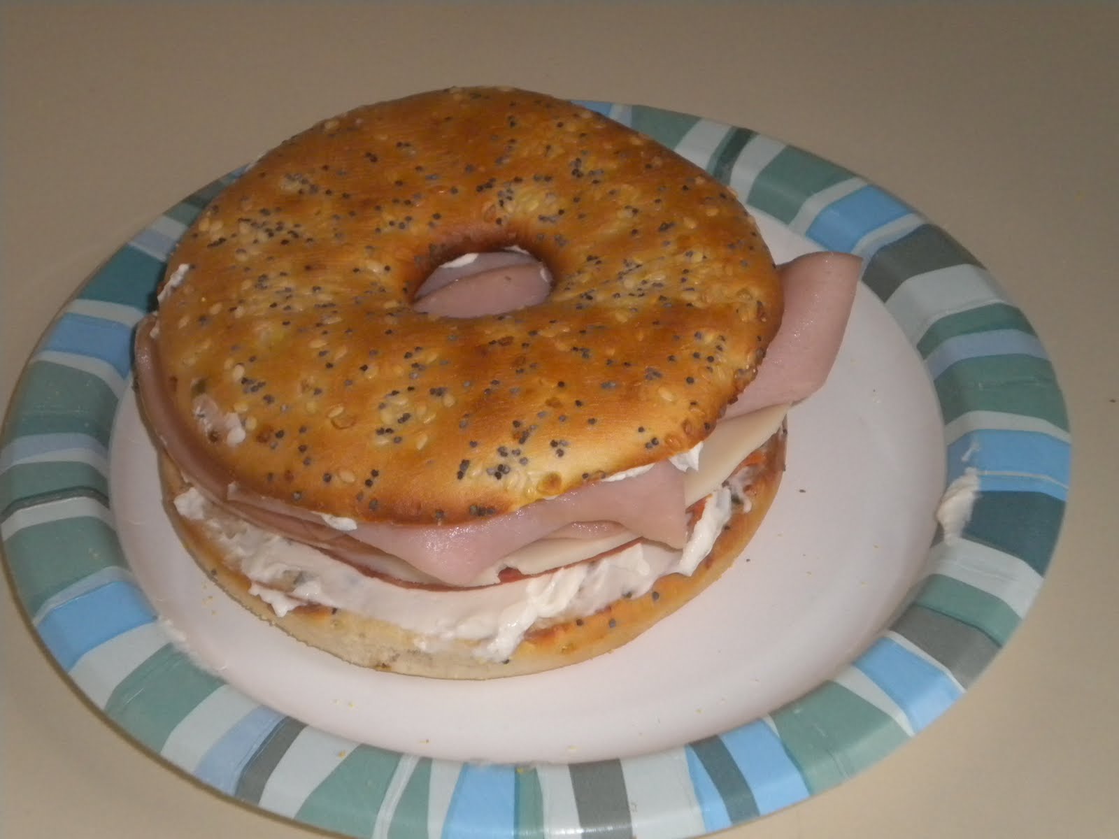 They come in three flavors — Plain, Wheat, and Everything. We like the plain or wheat flavors in the morning toasted with peanut butter. But as you can see from the picture, I also LOVE the Everything Bagel Thin toasted with chive cream cheese, turkey, and cheddar.