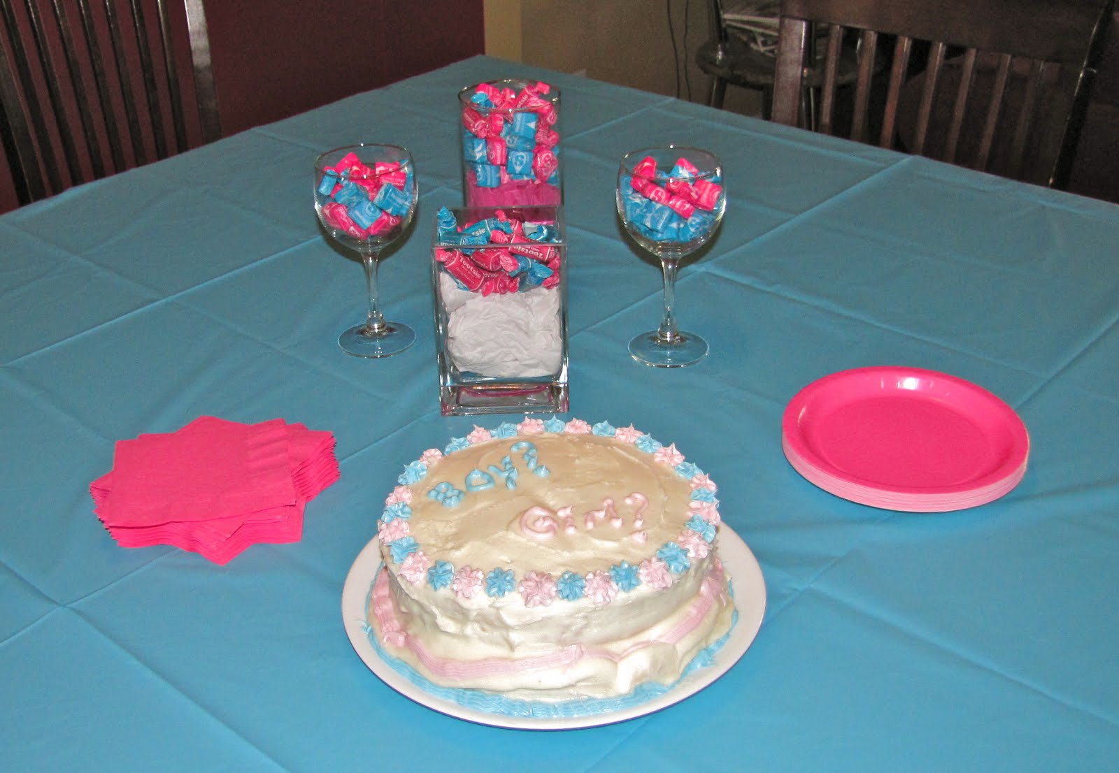 – I did the decorations in blue and pink and found candy at the store that I could use that was blue or pink.