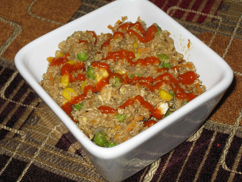 This recipe is easy to put together and I love that it is healthier than regular fried rice. I added chicken to the original recipe, which I just stirred in at the end. It was delicious and fun to try something new. There is a lot of information about rinsing the quinoa before you use it. I followed the directions on the package. You can find quinoa with the rice or organic grains in your grocery store.