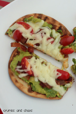 I love grilling pizza because it gets that charred taste that you get when you go to a restaurant with a wood fire pizza grill. I grabbed flatbread from the deli section and used that as my crust. At the same time, I also made pepperoni and cheese pizza for the kids. Make guacamole your favorite way, spread it on the warmed crust, top with bacon, tomatoes and cheese and get ready to experience pure guacamole bliss!