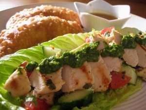 Grilled Lime Chicken Lettuce Boats w/Avocado Salad and Chimichurri from Bake Up, Little Suzy